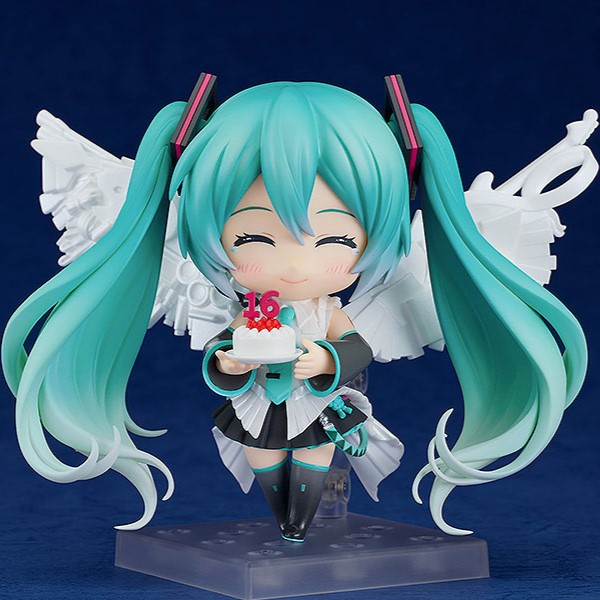 From Character Vocal Series 01: Hatsune Miku comes a Nendoroid of Hatsune Miku based on her 16th birthday illustration created by Rella!Face plates:Smiling faceGrinning faceTearful smiling faceOptional parts:Wings of CreationHatsune Miku packageBirthday cakeOther optional parts for different poses.